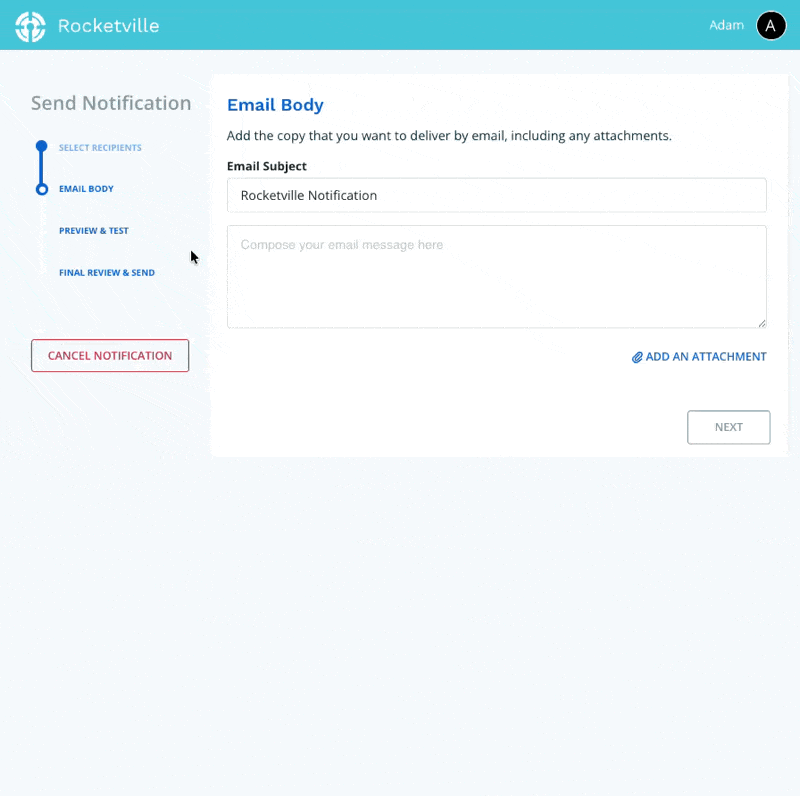 Sign into Connect Rocket. From the dashboard select Send an email-only notification.