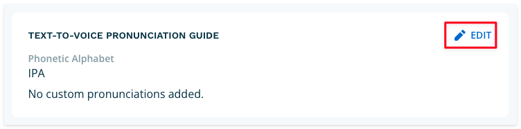 The final step, which is optional, is to configure the pronunciation guide. This guide will be utilized by the text-to-speech engine to guide pronunciation of words that often confuse text-to-speech engines. Click the pencil/edit to begin adding your information.
